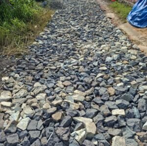 Berdasarkan pantauan di lapangan, mulai dari proses onderlagh lapisan dasar batu belah yang disusun ketebalannya kurang dari 10cm, serta tidak ada pasir sebagai lapisan dibawah batu tersebut.